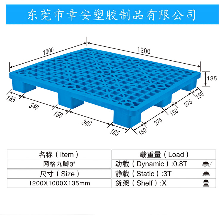 由于要與輸送設備的橫向寬度相適合,塑料托盤若是 2向進叉則用 1100 X 1100mm,塑料托盤若是4向進叉則選用1100 X 1100mm或100 X 1200mm的哪一種托盤都可以。
